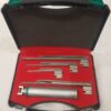 A Miller straight fiberoptic laryngoscope is a medical device, a handle w/ C Size 1.5Volt × 2 batteries-powered for intubation, featuring a reusable, stainless steel straight blades with an integrated fiber optic handle for illumination, a removable light conductor, and compatibility with standard fiber optic handles. Specifications include varying blade sizes (0-4), lengths, widths, high-density fiber counts for bright, cool light transmission, and smooth, mirror-polished finishes for safe, easy cleaning / Disinfection by Sidex Solution or Plasma sterilization.